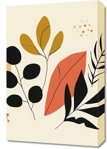 Obraz z serii minimalistyczne zatytułowany Różnorodność Stylu. Ten piękny obraz przedstawia różnorodność roślin w stylizowanej formie, z łagodnymi krzywiznami i eleganckimi liniami na spokojnym tle. Kolorystyka jest ciepła i naturalna, z dominującymi odcieniami ochry, czerwieni i czerni, które razem tworzą kojącą i zrównoważoną paletę. Obraz doskonale wpasuje się w przestrzenie, które chcą wyrazić spokój i harmonię poprzez sztukę. Może ozdobić ściany domowego salonu, sypialni, kącika do czytania, czy też dodać akcentu naturalnego piękna do biurowego otoczenia.