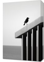 Obraz z serii pejzaże zatytułowany Samotna Odchłań. Ten skrajnie minimalistyczny obraz przedstawia pojedynczego ptaka spoczywającego na czystej, białej krawędzi konstrukcji, z subtelnym tłem nieskończonego morza. Zdjęcie w skali szarości, gdzie tylko kontury ptaka wyróżniają się na jednolitym tle, wywołuje poczucie spokoju i introspekcji. Idealny dla nowoczesnych przestrzeni biurowych i domowych, które pragną oddać hołd prostocie i skupieniu, a także jako przemyślany akcent w galeriach sztuki czy minimalistycznych salonach.