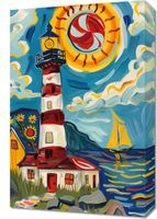Obraz z serii abstrakcja zatytułowany Żywa Przystań to wesoła i barwna ilustracja przedstawiająca latarnię morską w nadmorskim pejzażu. Wyraziste, kręte linie i żywe kolory nadają scenie energii i ruchu, a dynamiczne słońce z żaglówką na tle morskich fal tworzy optymistyczny obraz. Latarnia morska, z jej klasycznymi czerwono-białymi pasami, stoi dumnie obok uroczego żółtego domku, a całość jest otoczona przez stylizowane kwiaty i roślinność. Styl przypomina ekspresjonistyczne dzieła z początku XX wieku, pełne życia i radości. Ten obraz jest idealny do rozjaśnienia każdego pomieszczenia, nadając mu ciepła i pozytywnej energii, świetnie sprawdzi się w przestrzeniach takich jak salony, pokoje dziecięce czy miejsca publiczne, gdzie może wprowadzić atmosferę spokoju i radosnego spędzania czasu.