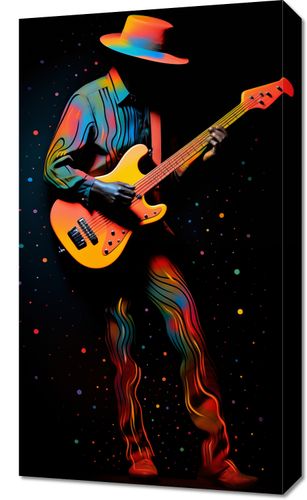 Obraz z serii pop art zatytułowany Barwna Melodia. Ta energetyzująca ilustracja przedstawia sylwetkę gitarzysty w intensywnych, neonowych barwach, które pulsują rytmicznie wokół jego postaci, tworząc wizualny odpowiednik muzycznych dźwięków. Postać muzyka, pozbawiona wyraźnych detali, pozwala skupić się na ekspresji i emocji przekazywanej przez muzykę. Obraz ten jest idealny dla miłośników muzyki, sztuki współczesnej i dynamicznych, kreatywnych przestrzeni, doskonale nadaje się do studiów nagrań, pokojów muzycznych, klubów, a także jako wyrazisty element dekoracyjny w nowoczesnych domach.