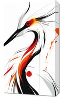 Obraz z serii motywy wschodnie zatytułowany Bocian to dynamiczna i ekspresyjna interpretacja bociana, wykonana w stylu nowoczesnej abstrakcji. Ptak przedstawiony jest za pomocą ostrych, płynnych linii i silnych kontrastów kolorystycznych, gdzie biel, czerń i intensywne odcienie czerwieni przenikają się, tworząc uczucie ruchu i energii. Ogień w oku bociana i płomienne akcenty na jego upierzeniu sugerują pasję i życiową siłę, a spontaniczne plamy i kropki dodają dziełu artystycznego zacięcia. Obraz emanuje siłą i wolnością, idealny do wnętrz, które chcą wyrazić dynamizm i siłę natury, doskonały dla przestrzeni pełnych energii jak nowoczesne biura, kreatywne pracownie, lub jako wyrazisty element dekoracyjny w domowym salonie.
