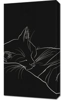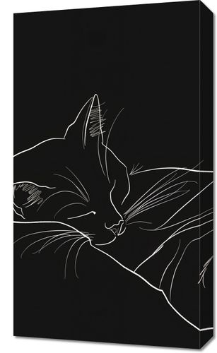 Obraz z serii minimalistyczne zatytułowany Nocny Spokój przedstawia subtelnie zarysowanego kota głęboko pogrążonego we śnie, umieszczonego na tle czarnej, nieskończonej przestrzeni. Białe linie delikatnie kreślą kształt zwierzęcia, uwypuklając jego spokojną postawę i łagodne rysy twarzy. To proste, lecz wyraziste dzieło sztuki przepełnione jest spokojem i elegancją, a kontrastowy czarno-biały motyw przyciąga wzrok i wprowadza do wnętrza atmosferę tajemniczości i wyciszenia. Idealny dla przestrzeni, które są azylem relaksu i odpoczynku, jak sypialnie czy zakątki do medytacji.