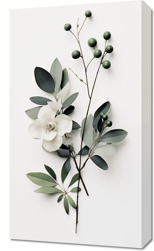 Obraz z serii wnętrza zatytułowany Papierowy Kwiat. Ten obraz przedstawia delikatną kompozycję wykonaną z papieru, która odwzorowuje naturę z zadziwiającą dokładnością. Wykwintna papierowa magnolia w towarzystwie subtelnego listowia i jagód, wszystkie w spokojnych, pastelowych tonach, tworzą obraz pełen elegancji i delikatności. Idealny dla przestrzeni, które cenią sobie minimalizm i spokój, jak skandynawskie wnętrza, pracownie projektowe czy przestrzenie relaksacyjne, gdzie taka forma sztuki może wprowadzić wyciszającą atmosferę i dodać wnętrzu subtelnej, artystycznej nuty.