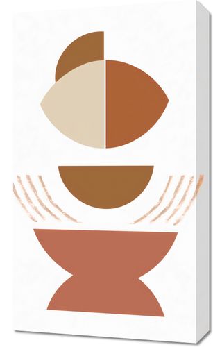 Obraz z serii boho zatytułowany Pastelowa Hipnoza. Łączy prostotę kształtów geometrycznych z subtelnością pastelowych barw, tworząc obraz o niemal hipnotycznym uporządkowaniu. W centrum kompozycji znajduje się dualistyczny kształt, który balansuje między symetrią a asymetrią, otoczony przez półkola i linie, przywołujące na myśl delikatne promienie słońca. Paleta kolorystyczna ogranicza się do ciepłych odcieni beżu, brązu i rdzawego różu, co dodaje dziełu wyrafinowanej subtelności. Doskonale odnajdzie się jako centralny punkt w jasnych, przestronnych wnętrzach, gdzie może stać się tłem dla głębokich refleksji, lub jako element dekoracyjny w minimalistycznie urządzonych pomieszczeniach, dodając im ciepła i elegancji.