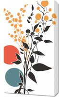 Obraz z serii minimalistyczne zatytułowany Rozkwitające Życie. Obraz przedstawia odświeżającą i ożywioną kompozycję, w której czarne sylwetki roślin wzbijają się ku bogato kolorowym okręgom, tworząc wizję rozkwitającego ogrodu. Kolorystyka plakatu, pełna złotych, pomarańczowych i akwamarynowych akcentów na białym tle, oddaje radość i obfitość natury.Ten obraz będzie pięknym dodatkiem do każdej przestrzeni, która chce oddać hołd naturze i jej niezwykłemu pięknu. Świetnie pasuje do jasnych, przestronnych wnętrz, takich jak salony, gabinety czy jadalnie. Z pewnością wprowadzi do pomieszczenia atmosferę witalności i naturalnego piękna.