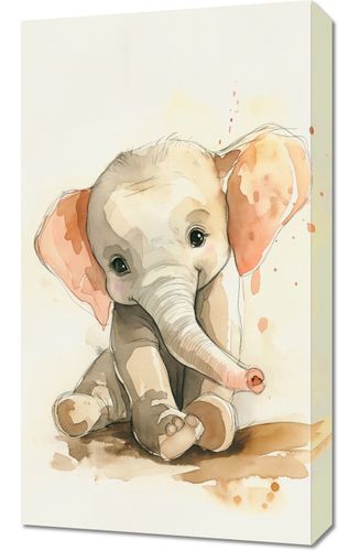 Obraz z serii wnętrza zatytułowany Siwy Słonik to czarująca akwarela przedstawiająca małego, siwego słonia z dużymi, wyrazistymi oczami i rozłożystymi uszami w odcieniach różu. Delikatność i ciepło ilustracji wydobywają ujmującą niewinność młodego słonia. Rozpryski akwareli wokół postaci dodają dynamiki i lekkości, sugerując radosną zabawę i beztroskę. Ten obraz wprowadza atmosferę spokoju i radości, idealnie nadają się do ozdobienia przestrzeni dziecięcej, takiej jak pokoje maluchów, przedszkola, sale zabaw czy kąciki czytelnicze w bibliotekach. Jego urokliwy obraz może inspirować młode umysły do marzeń i pozytywnego myślenia.