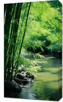 Obraz z serii natura zatytułowany Spokój Bambusów. Ukazuje on idylliczny zakątek przyrody, gdzie zielone pędy bambusa delikatnie zginają się nad błogim, spokojnie płynącym strumieniem. Gra światła i cienia na liściach bambusa tworzy wrażenie głębi i spokoju, zaś szemrząca woda dodaje uczucie świeżości i czystości. Ten obraz oddaje piękno i spokój odosobnionego zakątka natury, jest więc idealny dla przestrzeni relaksacyjnych takich jak spa, pokoje do medytacji lub jako ukojenie w zgiełku codzienności w domowych wnętrzach. To doskonała dekoracja dla tych, którzy pragną wprowadzić element natury i harmonii do swojego otoczenia.