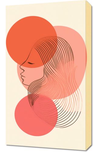 Obraz z serii minimalistyczne zatytułowany Zmierzch Linijny. Delikatny profil kobiety jest zarysowany z wykorzystaniem cienkich, precyzyjnych linii, które przywodzą na myśl delikatne włosy rozwiane przez wieczorny wiatr. Tło w ciepłych odcieniach różu i pomarańczy tworzy atmosferę zachodzącego słońca, która delikatnie obejmuje jej postać. Ta artystyczna kompozycja ukazuje spokój i refleksję, nawiązując do końca dnia i momentów introspekcji. Idealnie nadaje się do umieszczenia w przestrzeniach, które mają być oazą relaksu i spokoju, takich jak sypialnie, pokoje do medytacji czy przytulne zakątki w domach i apartamentach, gdzie może stanowić zaproszenie do chwili zadumy.