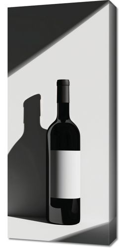 Obraz z serii wnętrza zatytułowany Butla Wina . Przedstawia minimalistyczny i elegancki wizerunek butelki wina. Kompozycja jest prosta i nowoczesna, z butelką umieszczoną na jasnym tle z ostrymi liniami cienia, które dodają głębi i zainteresowania wizualnego. Cienie są ostre i wyraźne, co sugeruje, że światło padające na butelkę jest mocne i bezpośrednie. Butelka ma klasyczną etykietę bez żadnych detali, co nadaje całemu obrazowi wyrafinowany charakter. Użycie kontrastu między ciemnymi tonami butelki a jasnym tłem podkreśla formę i sylwetkę przedmiotu, skupiając uwagę na jego zarysie. Taki obraz mógłby być świetnym dodatkiem do wnętrz urządzonych w stylu minimalistycznym lub współczesnym, a także pasowałby do przestrzeni, gdzie celebruje się kulturę wina.