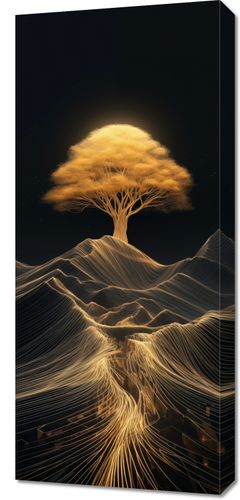 Obraz z serii abstrakcja zatytułowany Drzewo Energii. Przedstawia on hipnotyzujący widok drzewa, którego korony i korzenie są ukazane jako sieć płynących linii światła, symbolizujących życie i energię. Kontrastujące z ciemnym niebem, linie świetlne tworzą efekt wizualny przypominający połączenie natury z energią. Dzieło to łączy w sobie piękno naturalnych form z abstrakcyjnym wyrazem, nadając mu głębię i metaforyczne znaczenie. Obraz ten jest idealnym wyborem dla przestrzeni, które pragną wprowadzić elementy inspirujące do refleksji nad życiem, naturą i jej niewidzialnymi więziami.