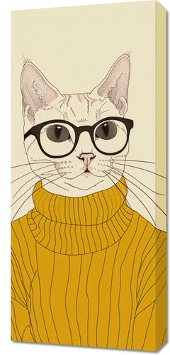 Obraz z serii abstrakcja zatytułowany Intelektualista to urocze przedstawienie kota ubranego w stylowy, żółty golf, dopełnionego okularami w intelektualnym stylu. Ilustracja charakteryzuje się subtelną linią i pastelową kolorystyką, co nadaje jej delikatny i stylowy wygląd. Okulary z grubymi oprawkami nadają kotu wyraz powagi i inteligencji, podczas gdy żółty sweter wskazuje na wyrafinowany gust. Całość kompozycji jest zabawna, ale jednocześnie elegancka, sprawiając, że obraz ten jest idealny dla tych, którzy cenią sobie humor połączony z klasą. Doskonale nadaje się do nowoczesnych przestrzeni mieszkalnych, pokoi młodzieżowych, biur lub jako dekoracja w księgarniach i kawiarniach.