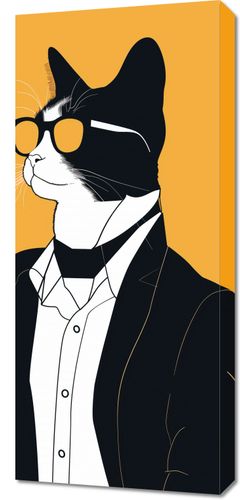 Obraz z serii abstrakcja zatytułowany Jegomość to stylizowany portret kota w ludzkim ubiorze. Charakterystyczne, czarno-białe ubarwienie kota zostało podkreślone przez elegancki, czarny garnitur z białą koszulą oraz modnymi, żółtymi okularami, które dodają postaci wyrafinowanego uroku. Tło w intensywnym odcieniu musztardy idealnie komponuje się z całością, nadając plakatowi ciepły i wyrazisty charakter. Silny profil kota, wyraźne linie i minimalistyczne podejście do szczegółów czynią ten obraz zarówno zabawnym, jak i eleganckim, idealnym do przestrzeni, które cenią sobie humor i styl, takich jak nowoczesne biura, domowe biblioteki czy saloniki.