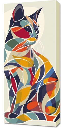 Obraz z serii minimalistyczne zatytułowany Kalejdoskopowy Kot to eksplozja barw i kształtów, która przenosi klasyczny wizerunek kota w świat abstrakcyjnej sztuki. Przepełnione ciepłymi odcieniami żółci, pomarańczy, czerwieni oraz zbalansowanymi akcentami zieleni i błękitu, jego formy zwijają się i przekręcają, tworząc płynną, prawie hipnotyzującą kompozycję. Kot, przedstawiony w profilu, ma intensywne spojrzenie, które zdaje się obserwować otaczający go kalejdoskop życia. Ten obraz doda dynamiki i koloru każdej przestrzeni, idealny do nowoczesnych mieszkań i przestrzeni kreatywnych, gdzie może stać się centrum uwagi i tematem do rozmów.