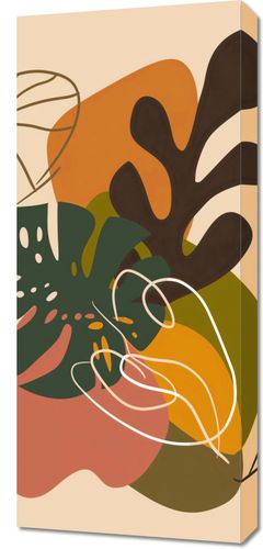 Obraz z serii minimalistyczne zatytułowany Leśna Kompozycja. Na tej grafice przedstawione są uproszczone, ale wyraźne kształty liści i roślin leśnych, które łączą się tworząc ciepłą i kojącą kompozycję. Barwy jesienne, od głębokiej zieleni, przez ciepły pomarańcz, aż po bogate brązy, są połączone z delikatnymi liniami, które przypominają światło przebijające się przez drzewa.Ten obraz będzie pięknym uzupełnieniem wnętrz, w których dominuje natura i spokój, takich jak skandynawskie lub rustykalne salony, przestrzenne holu czy jasne sypialnie. Wyraźne formy i ciepłe barwy wprowadzą harmonię i przyjemną dla oka różnorodność do każdego pomieszczenia.