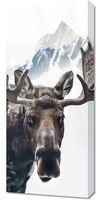 Obraz z serii natura zatytułowany Łoś Duch Lasu to majestatyczne przedstawienie łosia, którego potężne poroże przeobraża się w górski krajobraz. Na pierwszym planie widzimy głęboki, przenikliwy wzrok łosia, skupionego na widzu, z pięknymi, szczegółowo odwzorowanymi detalami sierści. Jego rozłożyste poroże płynnie przeistacza się w ośnieżone szczyty, co symbolizuje jego władzę i jedność z dziką przyrodą. Jasne, lekko zamglone tło sugeruje poranne światło, dodając plakatowi poczucia tajemnicy i dzikiego piękna. Ten obraz doskonale sprawdzi się w przestrzeniach inspirowanych naturą, takich jak chaty górskie, domy myśliwskie, lub jako wyraz głębokiego szacunku dla dzikiej przyrody w salonach i przestrzeniach wspólnych miłośników natury.