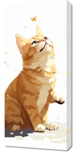 Obraz z serii wnętrza zatytułowany Motyle i Marzenia. Ta pełna ciepła ilustracja przedstawia urocze, rozmarzone spojrzenie kota skierowane na delikatnego motyla. Wielowarstwowe pociągnięcia pędzla i pastelowe kolory tworzą atmosferę beztroski i lekkości. Scena jest przesiąknięta spokojem, a gra światła i cienia nadaje jej głębię i realizm. Ten obraz jest idealnym wyborem dla miłośników kotów i delikatnej, subtelnej sztuki, doskonale nadaje się do wnętrz o domowym charakterze, takich jak salon, pokój dziecka, czy jako uroczy element dekoracyjny w przestrzeniach relaksacyjnych.