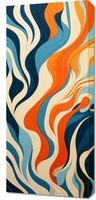 Obraz z serii abstrakcja zatytułowany Oceaniczne Fale. Hipnotyzujący wir barw przypominający przemieszczające się fale oceanu, w których błękit miesza się z głęboką granatową otchłanią i akcentami ciepłego, płonącego ognia. Te złożone wzory płynnie przechodzą w jedną całość, tworząc wizualny spektakl, który zaprasza do głębokiej kontemplacji. Kontrastujące kolorowe pasma dodają obrazowi dynamiki i witalności. Doskonale sprawdzi się w nowoczesnych biurach o minimalistycznym wnętrzu oraz w przestrzeniach publicznych, takich jak galerie sztuki czy kawiarnie o awangardowym designie.
