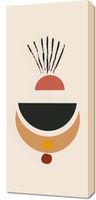 Obraz z serii boho zatytułowany Spójna Refleksja.Grafika ukazuje abstrakcyjną kompozycję geometrycznych kształtów w spójnej, ciepłej palecie barw, sugerującą delikatność i równowagę. Cechą charakterystyczną są wydłużone, smukłe linie wychodzące z półkola na górze, które mogą przypominać promienie słońca czy roślinne motywy. Ten obraz doskonale wpasuje się w nowoczesne i minimalistyczne przestrzenie, takie jak jadalnie, salony, a nawet kreatywne przestrzenie pracy, gdzie może stanowić spokojny punkt skupienia i inspirować do przemyśleń.