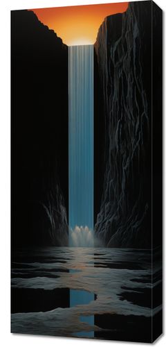 Obraz z serii abstrakcja zatytułowany Wodospad Światła. Grafika ta przenosi nas w serce majestatycznego kanionu, gdzie potężny wodospad wylewa się z otchłani, tworząc mistyczne i uspokajające widmo. Wodospad, oświetlony przez promienie wschodzącego słońca, rysuje się na tle ciemnych ścian kanionu, tworząc silny kontrast między światłem a cieniem. Gra światła na wodzie i skalistym podłożu dodaje kompozycji głębi i tekstury. Ten obraz jest idealnym dodatkiem do każdego wnętrza, w którym chce się stworzyć atmosferę spokoju i refleksji, świetnie sprawdzając się w salonach, pokojach medytacyjnych czy przestrzeniach wellness.