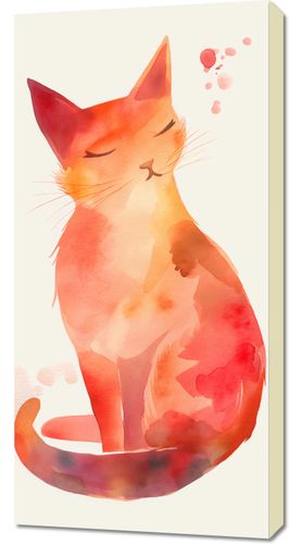 Obraz z serii wnętrza zatytułowany Akwarelowy Kot przedstawia akwarelową ilustrację spokojnego, zamyślonego kota. Kot zamyka oczy w zadowoleniu, a jego sylwetka płynnie przechodzi w bogatą paletę ciepłych odcieni czerwieni i pomarańczu, co nadaje dziełu wrażenie spokoju i ciepła. Delikatne plamy i rozmycia barw typowe dla akwareli tworzą wrażenie lekkości i przestrzeni, a jednocześnie podkreślają łagodność i spokojny nastrój obrazu. Jest to doskonały wybór dla tych, którzy pragną wprowadzić do swojego domu element relaksu i spokoju. Obraz ten idealnie wpasuje się w przestrzeń taką jak przytulna kawiarnia, zakątek do czytania w domowej biblioteczce lub pokój dziecinny, gdzie może inspirować do spokojnego snu i odpoczynku.