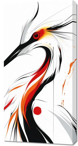 Obraz z serii motywy wschodnie zatytułowany Bocian to dynamiczna i ekspresyjna interpretacja bociana, wykonana w stylu nowoczesnej abstrakcji. Ptak przedstawiony jest za pomocą ostrych, płynnych linii i silnych kontrastów kolorystycznych, gdzie biel, czerń i intensywne odcienie czerwieni przenikają się, tworząc uczucie ruchu i energii. Ogień w oku bociana i płomienne akcenty na jego upierzeniu sugerują pasję i życiową siłę, a spontaniczne plamy i kropki dodają dziełu artystycznego zacięcia. Obraz emanuje siłą i wolnością, idealny do wnętrz, które chcą wyrazić dynamizm i siłę natury, doskonały dla przestrzeni pełnych energii jak nowoczesne biura, kreatywne pracownie, lub jako wyrazisty element dekoracyjny w domowym salonie.