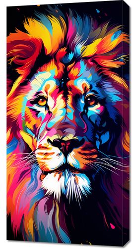 Obraz z serii abstrakcja zatytułowany Kolory Królestwa. Ten odważny i dynamiczny obraz przedstawia króla zwierząt - lwa, którego grzywa została zinterpretowana w eksplozji żywych, abstrakcyjnych barw. Wzór i intensywność kolorów podkreślają majestat i siłę lwa, dodając mu nowoczesnego i artystycznego charakteru. To dzieło sztuki przemawia mocą i wolnością, będąc idealnym wyborem dla przestrzeni kreatywnych, odważnych i pełnych energii, takich jak nowoczesne salony, pracownie artystyczne, czy przestrzenie młodzieżowe.