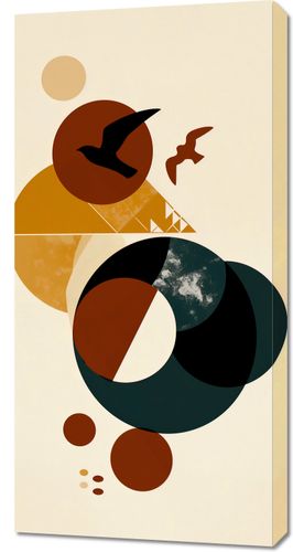 Obraz z serii minimalistyczne zatytułowany Kosmiczne Migracje. Ten unikatowy plakat przenosi nas w przestrzeń, gdzie natura spotyka się z abstrakcją kosmosu. Siluety ptaków na tle krągów przypominających planety i księżyce wprowadzają dynamikę i poczucie ruchu. Paleta barw składa się z głębokiego morskiego granatu, ciepłego ocheru i brązów, oraz akcentów w postaci czystych bieli i delikatnych beżów, tworząc wspólnie wizję nieograniczonych możliwości i eksploracji.Obraz doskonale uzupełni nowoczesne przestrzenie życiowe lub robocze, inspirując do myślenia poza utartymi ścieżkami.