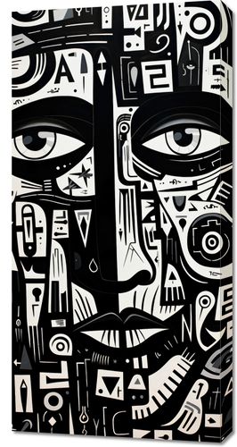 Obraz z serii abstrakcja zatytułowany Labirynt Myśli. Intrygujące oczy spoglądające z głębi obrazu są otoczone złożonymi wzorami i symbolami, które łączą się, tworząc enigmatyczny portret. Czarno-białe barwy kontrastują ze sobą, dodając dziełu intensywności i głębi. Złożoność wzorów symbolizuje skomplikowane myśli i emocje, które kryją się za ludzkim spojrzeniem. Świetnie sprawdzi się w nowoczesnych biurach, galeriach sztuki oraz w przestrzeniach przeznaczonych dla miłośników abstrakcyjnej ekspresji.