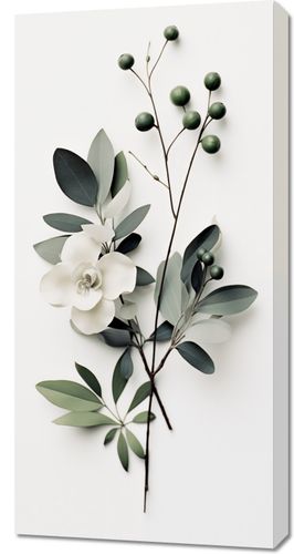 Obraz z serii wnętrza zatytułowany Papierowy Kwiat. Ten obraz przedstawia delikatną kompozycję wykonaną z papieru, która odwzorowuje naturę z zadziwiającą dokładnością. Wykwintna papierowa magnolia w towarzystwie subtelnego listowia i jagód, wszystkie w spokojnych, pastelowych tonach, tworzą obraz pełen elegancji i delikatności. Idealny dla przestrzeni, które cenią sobie minimalizm i spokój, jak skandynawskie wnętrza, pracownie projektowe czy przestrzenie relaksacyjne, gdzie taka forma sztuki może wprowadzić wyciszającą atmosferę i dodać wnętrzu subtelnej, artystycznej nuty.