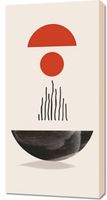 Obraz z serii boho zatytułowany Półokrągła Forma.Na tej grafike zmysłowe, geometryczne kształty tworzą obraz, który równie dobrze może być interpretacją wschodu słońca, jak i abstrakcyjnym przedstawieniem równowagi w przyrodzie. Półokrągła, czerwona forma nad czarną, pionową linią może sugerować słońce wschodzące nad cichym jeziorem, a czerwony krąg pośrodku może być metaforą istoty życia. Duża, ciemna forma na dole to ziemia lub możliwe odbicie, a całość kreuje uczucie pełni i harmonii.Plakat wprowadzi do wnętrza poczucie spokoju i wyważenia. Jest idealny dla tych, którzy chcą dodać do swojej przestrzeni element medytacyjny, pobudzający do refleksji. Doskonale pasuje do minimalistycznych salonów, biur, a także jako element zen w sypialniach, wprowadzając atmosferę oczyszczenia i wewnętrznej równowagi.
