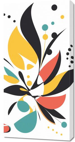 Obraz z serii minimalistyczne zatytułowany Radosny Bujak. To żywiołowe i radosne przedstawienie abstrakcyjnej roślinności, które łączy odważne kształty i przemyślaną paletę barw. Dominują tu intensywne odcienie żółcieni i czerwieni, zestawione z spokojnymi akcentami turkusu i czerń głębokiej nocy, przełamane żółtymi i niebieskimi akcentami w formie kropek, tworząc kompozycję pulsującą życiem i energią. Ten obraz to idealne rozwiązanie dla przestrzeni, które potrzebują odrobiny optymizmu i witalności. Doskonale sprawdzi się w przestronnych salonach, kreatywnych pracowniach, a nawet w kącikach dla dzieci, gdzie jego żywe kolory i dynamiczne formy mogą pobudzać wyobraźnię i dodawać energii.