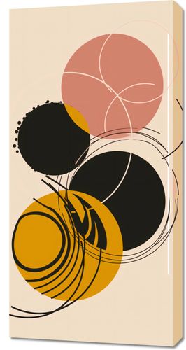 Obraz z serii minimalistyczne zatytułowany Słońce i Cień. Przedstawia on złożoną kompozycję geometrycznych kształtów i liniowych motywów, które razem tworzą wizję słonecznej abstrakcji. Intensywne czernie i złote żółcie kontrastują z delikatnymi odcieniami różu, sugerując grę światła i cienia. Elementy graficzne, takie jak linie i kropki, dodają dynamiki i nowoczesnego charakteru.Ten obraz idealnie nadaje się do nowoczesnych przestrzeni, które cenią prostotę i wyrafinowanie. Jego żywa paleta barw świetnie wkomponuje się w jasne wnętrza, dodając im życia i energii, zarówno w domowych salonach, jak i kreatywnych biurach czy przestrzeniach publicznych.