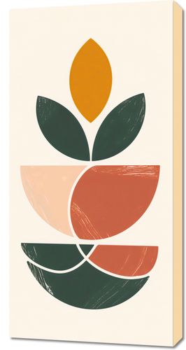 Obraz z serii minimalistyczne zatytułowany Zrównoważony Wzrost. Ta grafika to uproszczona, ale sugestywna reprezentacja wzrostu rośliny, przedstawiona za pomocą geometrycznych form. Symetryczne ułożenie elementów w ciepłych, naturalnych barwach zieleni, musztardowego żółcieni i terrakoty symbolizuje harmonię i naturalny rozwój. Całość tworzy wyważoną i przyjemną dla oka kompozycję, która może symbolizować równowagę i spokój.Ten obraz będzie pięknie komponował się z wnętrzami utrzymanymi w naturalnym stylu lub przestrzeniami, które akcentują zrównoważony rozwój i ekologiczny styl życia. Idealny dla jasnych, spokojnych przestrzeni, takich jak domowe biura, przestronne salony lub jadalnie, gdzie wprowadzi dodatkowy element natury i harmonii.