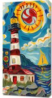 Obraz z serii abstrakcja zatytułowany Żywa Przystań to wesoła i barwna ilustracja przedstawiająca latarnię morską w nadmorskim pejzażu. Wyraziste, kręte linie i żywe kolory nadają scenie energii i ruchu, a dynamiczne słońce z żaglówką na tle morskich fal tworzy optymistyczny obraz. Latarnia morska, z jej klasycznymi czerwono-białymi pasami, stoi dumnie obok uroczego żółtego domku, a całość jest otoczona przez stylizowane kwiaty i roślinność. Styl przypomina ekspresjonistyczne dzieła z początku XX wieku, pełne życia i radości. Ten obraz jest idealny do rozjaśnienia każdego pomieszczenia, nadając mu ciepła i pozytywnej energii, świetnie sprawdzi się w przestrzeniach takich jak salony, pokoje dziecięce czy miejsca publiczne, gdzie może wprowadzić atmosferę spokoju i radosnego spędzania czasu.
