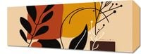 Plakat z serii minimalistyczne zatytułowany Ciepłe Kontury. Grafika przedstawia bogatą kompozycję stylizowanych roślin i abstrakcyjnych kształtów, utrzymaną w ciepłej palecie brązów, pomarańczy i ochry, z akcentami kontrastującej czerni. Delikatne linie dodają delikatności i subtelności, co sprawia, że praca emanuje naturalnym spokojem i elegancją. Obraz ten idealnie wkomponuje się w wnętrza, które cenią sobie ciepło i komfort, takie jak przytulne salony, jadalnie czy sypialnie. Dzięki swoim ziemistym tonom świetnie pasuje również do przestrzeni o naturalnym wystroju, wzbogacając je o elegancki, artystyczny akcent.