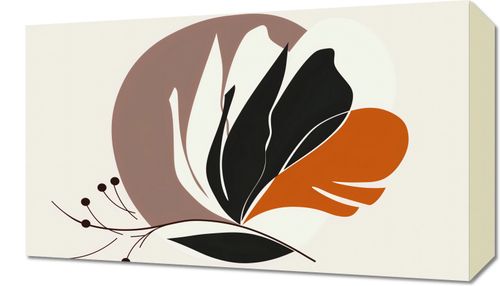 Plakat z serii minimalistyczne zatytułowany Elegancja Roślinna. Grafika ta to abstrakcyjna interpretacja roślinności, przedstawiająca stylizowane liście i kwiaty w spokojnej palecie barw - głębokiej czerni, ciepłej terakoty oraz miękkich beżów. Zarysy liści są wyraźne, a ich formy przypominają naturalny ruch, co nadaje plakatowi życie i delikatność.Ten obraz doskonale odnajdzie się w eleganckich i uporządkowanych wnętrzach, które cenią sobie czystość formy i neutralną kolorystykę. Idealnie nadaje się do przestrzeni takich jak salony, recepcje hotelowe lub prywatne gabinety, gdzie może stanowić główny punkt artystyczny, jednocześnie wprowadzając element spokoju.