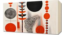 Obraz z serii abstrakcja zatytułowany Kontrastowy Kosmos. Fascynująca gra kontrastujących kolorów i kształtów, gdzie czerwone koła ożywiają monochromatyczne tło. Finezyjne tekstury i linie tworzą abstrakcyjny krajobraz przypominający kosmiczną przestrzeń. Czarne i czerwone elementy kontrastują ze sobą, dodając głębokości i wymiaru do kompozycji. Świetnie sprawdzi się w nowoczesnych biurach, galeriach sztuki oraz minimalistycznych salonach.