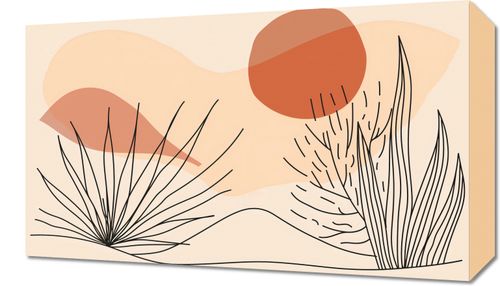 Obraz z serii boho zatytułowany Miękka Roślinność. Obraz przedstawia proste, lecz eleganckie rośliny pustynne na tle abstrakcyjnych, miękkich form i kolorów. Całość kompozycji opiera się na spokojnych odcieniach beżu, brązu oraz głębokiego terrakoty, co przywodzi na myśl ciepło i suchość pustynnego krajobrazu. Ten obraz świetnie sprawdzi się w wnętrzach o neutralnej kolorystyce, dodając im charakteru i ciepła. Idealnie nadaje się do salonu, przestrzeni wypoczynkowych lub biura, gdzie wprowadzi elementy natury i harmonii.