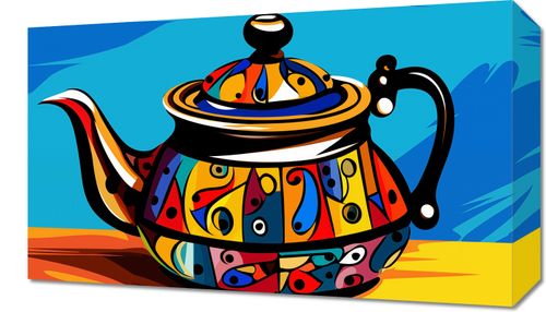 Obraz z serii pop art zatytułowany Może Herbatki?. Ta żywa i kolorowa ilustracja przedstawia czajnik w stylu pop-art, z wzorami przypominającymi prace modernistycznych malarzy. Barwna, geometryczna dekoracja czajnika, zestawiona z dynamicznym, niebieskim tłem, sprawia, że jest on nie tylko przedmiotem użytkowym, ale także dziełem sztuki. Kontrastujące kolory i wyraźne linie tworzą poczucie ruchu i energii. Obraz ten doda życia i charakteru każdej kuchni czy jadalni, inspirowanej sztuką i designem, będąc doskonałym prezentem dla miłośników wyjątkowych akcesoriów kuchennych.
