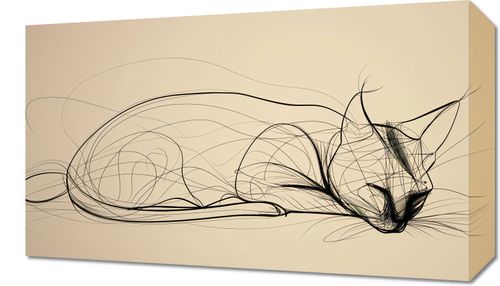 Obraz z serii wnętrza zatytułowany Odpoczynek. Prezentuje on minimalistyczne, lecz wyrafinowane przedstawienie kota odpoczywającego, wykonane za pomocą złożonych, płynnych linii. Kontury kształtujące zwierzęce ciało na złotawym tle emanują spokojem i harmonią, przyciągając wzrok swoją subtelną grą cieni i światła. Ta stylizowana ilustracja o prostocie z pogranicza abstrakcji i realizmu idealnie nadaje się do nowoczesnych przestrzeni życiowych, które cenią sobie elegancję i spokój, takich jak medytacyjne zakątki domu, ciche gabinety lub designerskie studio jogi. Obraz jest zaproszeniem do zwolnienia tempa i cieszenia się chwilą relaksu w naszym zagonionym świecie.