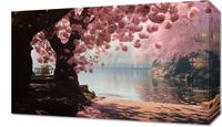 Obraz z serii motywy wschodnie zatytułowany Spokój Sakury przenosi nas do spokojnego zakątka, gdzie rozkwitłe drzewa wiśni tworzą bajkowy baldachim nad lśniącym jeziorem. Subtelna gra światła i cienia na delikatnych różowych płatkach w połączeniu z łagodnym odbiciem wody tworzy atmosferę spokoju i kontemplacji. Ta scena jest synonimem wiosennej odnowy i piękna, która z łatwością wniesie element romantycznej natury do każdego wnętrza. Idealnie odnajdzie się w przestrzeniach wypoczynkowych, pokojach gościnnych, czy salonach spa, dodając im uroku i subtelnej elegancji.