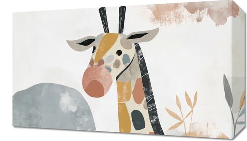 Obraz z serii wnętrza zatytułowany zatytułowany Żyrafa Bambino przedstawia stylizowany wizerunek żyrafy, którego cechy zostały zredukowane do prostych, geometrycznych kształtów i bloków pastelowych barw. Delikatne tekstury i ciepłe odcienie tworzą harmonijną kompozycję, która przyciąga wzrok i wprowadza do wnętrza spokój. Tło jest minimalistyczne z akcentami abstrakcyjnych form, co dodatkowo podkreśla nowoczesny charakter dzieła. Ten obraz będzie idealnym dodatkiem do przestrzeni o współczesnym designie, takich jak nowoczesne biura, kreatywne przestrzenie pracy, a także do pokojów dziecięcych lub wszędzie tam, gdzie chcemy dodać odrobinę zabawy i elegancji.