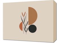 Obraz z serii boho zatytułowany Harmonijna Więź. Grafika jest esencją prostoty i natury uchwyconej w geometryczne formy. Linie przypominające delikatne źdźbła traw czy gałązki łączą się z organicznymi kształtami w odcieniach brązu, pomarańczy i czerni, tworząc wyrafinowany, naturalny motyw. Ta redukcja do najprostszych elementów wywołuje spokój i zrównoważenie. To dzieło doskonale odnajdzie się w przestrzeniach, gdzie dominuje spokój i prostota. Idealnie pasuje do minimalistycznych biur, eleganckich pokoi gościnnych lub jako wyrafinowany element dekoracyjny w modnych restauracjach. Może też dodać subtelnej, naturalnej elegancji do skandynawsko urządzonych mieszkań.