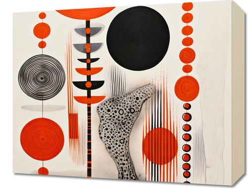 Obraz z serii abstrakcja zatytułowany Kontrastowy Kosmos. Fascynująca gra kontrastujących kolorów i kształtów, gdzie czerwone koła ożywiają monochromatyczne tło. Finezyjne tekstury i linie tworzą abstrakcyjny krajobraz przypominający kosmiczną przestrzeń. Czarne i czerwone elementy kontrastują ze sobą, dodając głębokości i wymiaru do kompozycji. Świetnie sprawdzi się w nowoczesnych biurach, galeriach sztuki oraz minimalistycznych salonach.