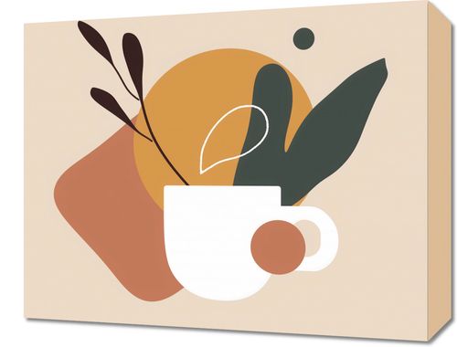 Obraz z serii minimalistyczne zatytułowany Ranna Kawka. Ta grafika to subtelne połączenie codziennego przedmiotu – kubka kawy – z abstrakcyjnymi elementami i roślinnymi motywami, co razem tworzy ciepłą i przyjemną kompozycję w odcieniach ochry, brązu i zieleni. Przenikające się kształty i delikatne linie nadają pracom niemal zenową jakość. Obraz ten doskonale uzupełni przestrzeń kuchenną, jadalnię lub domową kawiarnię, wprowadzając element spokoju i przytulności do porannego rytuału. Może także dodać ciepła i domowego charakteru do biur, zapewniając relaksującą atmosferę.