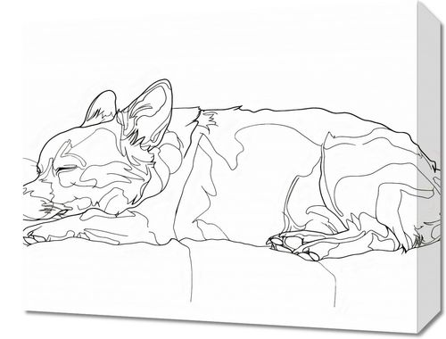 Obraz z serii minimalistyczne zatytułowany Śpiący Psiak.To delikatna linia rysunku, która za pomocą prostych, płynnych linii uchwyciła spokojny moment odpoczynku psa. Obraz sprawia wrażenie zarówno delikatnego, jak i pełnego ekspresji, z akcentami na szczegółach takich jak kształt uszu, fałdy skóry i zrelaksowana postawa psa. Ten rodzaj sztuki może dodać elegancji i prostoty każdemu wnętrzu, pasując szczególnie do nowoczesnych i minimalistycznych przestrzeni, takich jak salony, biblioteki czy gabinety. Jego uniwersalny charakter sprawia, że będzie się dobrze komponował w różnorodnych dekoracjach, od industrialnych po skandynawskie, dodając odrobinę domowego ciepła i uroku.