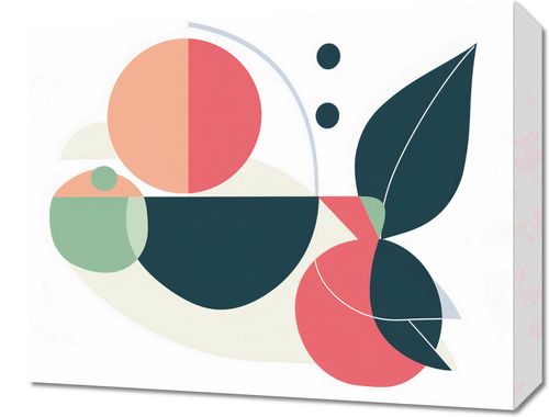 Obraz z serii minimalistyczne zatytułowany Symfonia Wizji. Ta grafika wykorzystuje proste, lecz wyrafinowane kształty geometryczne i roślinne formy, które razem tworzą płynną i spójną kompozycję. Kolorystyka jest subtelna i harmonijna, łącząc pastelowe tony z akcentami głębokiej zieleni i czerwieni, co nadaje pracy delikatność i współczesny charakter. Obraz ten idealnie wpasuje się w nowoczesne wnętrza, które poszukują równowagi między prostotą a wyrafinowaniem. Dzięki swojej minimalistycznej estetyce może służyć jako spokojny akcent w przestrzeniach domowych, takich jak salon, sypialnia, lub jako elegancki element dekoracyjny w przestrzeniach komercyjnych i biurowych.