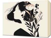 Obraz z serii minimalistyczne zatytułowany Szept w Głębi. Grafika ta prezentuje profil kobiecej sylwetki, z której wyłania się i z nią harmonijnie współgra bukiet delikatnych, stylizowanych kwiatów i liści w kolorach czerni, beżu oraz różnych odcieniach brązu. Jest to gra kontrastów i subtelnego piękna, gdzie człowiek i natura współistnieją w delikatnej równowadze. Ten plakat doskonale wpasuje się w spokojne, kobiece przestrzenie, takie jak sypialnia lub prywatny kącik do czytania. Jego łagodne kolory i prosta forma będą pięknie komponować się z wnętrzami w stylu skandynawskim, boho, czy nowoczesnym, dodając im elegancji i subtelności.
