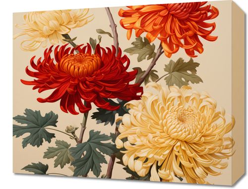 Obraz z serii natura zatytułowany Tańczące Chryzantemy. Płynne, spirale płatków w odcieniach czerwieni, pomarańczy i kremu, tworzą dynamiczny ruch, który przyciąga wzrok i przywołuje uczucia radosnego zmysłowości. Zielone liście kontrastujące z głębokimi odcieniami kwiatów dodają głębokości i tekstury kompozycji. Ten wizualny spektakl podkreśla naturę chryzantemy jako symbolu odnowy i nieśmiertelności. Doskonale wpasuje się w eleganckie spa, luksusowe hotelowe lobby oraz wnętrza w stylu vintage.BLEJTRAMABlejtrama, na którą naciągane jest płótno, wykonana jest z naturalnego drewna sosnowego. To mocne i solidne drewno stanowi jedno z najbardziej ekologicznych rozwiązań, gdyż jest łatwe w obróbce. Dodatkowym atutem jest fakt, że sosna rośnie w Polsce, co gwarantuje lokalną obróbkę materiału. Obraz na takiej blejtramie jest trwały i wytrzymały. Ramki do zdjęć nie są wliczone w cenę wydruku. Jeśli chcesz je nabyć, prosimy o dokonanie zakupu oddzielnie.