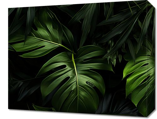 Obraz z serii natura zatytułowany Zielony Szept, przyciąga uwagę swoją głębią i bogactwem odcieni zieleni. Mieniące się liście monstery, połączone z subtelnymi, niemal abstrakcyjnymi formami innych roślin tropikalnych, tworzą kompozycję pełną życia i harmonii. Ta zieleń to synonim spokoju i regeneracji, a każdy detal podkreślony jest przez delikatne światło, które wydobywa tajemniczość i naturalne piękno roślin. Idealnie komponuje się w przestrzeniach współczesnych, które stawiają na ekologiczne i naturalne elementy dekoracyjne, jak również w miejscach publicznych, takich jak hotele, restauracje czy biura, gdzie może stanowić oazę relaksu i natury. Ta praca doskonale wpisuje się w potrzebę bliskości z przyrodą w zatłoczonych, miejskich wnętrzach.